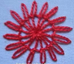 Gitti: This is a mix of 'satin' and 'buttonhole' stitches, and is mainly used to create designs like wheels which have small center holes. Â
