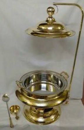 GL-01790 Brass Chafing Dish With Spoon, For Serving Food, Feature : Anti Corrosive, Durable, Fine Finished