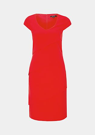 V-neckline with an in-seam zip at the back Cap sleeves and chest darts on the right Kick pleat at the back Front in a sophisticated tiered look Darts and dividing seams ensure a good fit With elaborate lining Figure-enhancing, fitted design with a straight skirt; back length approx. 93 cm in size 36 Made of high-quality fabric with a percentage of elastane