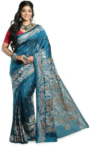 Kantha stitch saree is a traditional handcrafted saree originating from West Bengal, India. It features intricate embroidery created with simple running stitches in contrasting colours on fabric. The stitches by hand are closely spaced, creating a quilted texture and giving the saree a unique look. This Trendy Blended Silk Kantha Stitch Saree are known for their versatility and are suitable for both casual and formal occasions, showcasing the rich cultural heritage of Indian embroidery.