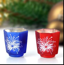 We offer glass candle holder for tealight or votive candle. fireworks decal design for xmas day and new year. 2 sizes are for your choice.