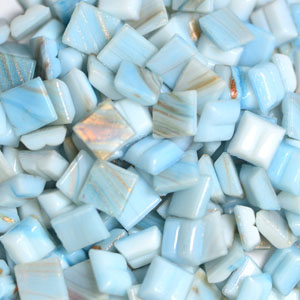 Vitreous Glass tiles are made in the Old Italian glass making tradition. These are manufactured glass tiles to a uniform shape and size, made by molten glass being poured into trays and fired in kilns under high temperature to create rich and consistent colour. They are waterproof, resilient and durable, so they can be used indoors and outdoors. The top is smooth and make a perfect right angle, the bottom is rough and edges are beveled for strong adhesion to glues and grout. They are easy to cut in any shape and can adhere to any reasonably smooth surface. Tiles are available in 38” or 34" squares (18” thick). 1 lb. of 38” tiles has about 700 titles & cover about 125 sq. inches.