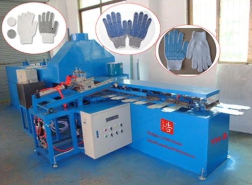 We are offering glove dotting machine. Model: yh-b hand model: 23 pairs (46piece) production efficiency: 720pairs hour air consumption: 0.6m3min total installed capacity: 5.4kw power 12.6kw heat power source: 380v 50hz 3 phase 4 wire net weight: about 930kg dimension: 5.7 meters long 1.8 meters wide and 1.2 meters high oven temperature range: room temperature -250℃