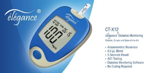 Elegance meter ct-x12 is self-monitoring of blood glucose level for diabetes patients. It has amperometric biosensor which gives accurate results in 5 seconds. It has also memory function of 120 test with date and time.