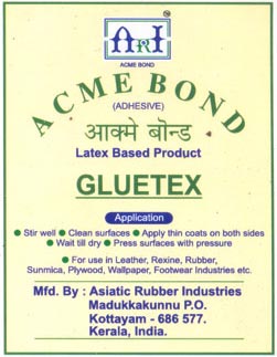 We are renowned as Manufacturer and Exporter of an extensive array of Gluetex Latex Based Adhesive. It is made from high-quality basic material and modern machinery by our professionals. Gluetex Latex Based Adhesive is widely demanded by customers for its effectiveness, high viscosity, and durability. Gluetex Latex Based Adhesive is offered by us at market leading prices.How to use : Stir well Cleans surface Apply thin coats on both sides Wait till dry Press surface with pressure