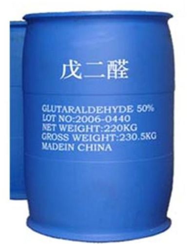 Glutaraldehyde is reactive in property, and liable to polymerize and oxidize, which will react with compounds containing active oxygen and nitrogen. The reaction of the product with protein is mainly carried out between the carbonyl group of the former and the amino group of the latter. Among the known aldehydes, the product is one of the best cross-linking agents for proteins.