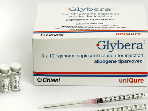 Glybera (Alipogene tiparvovec) This is a type of medicine that works by delivering genes into the body. Glybera is used to treat adults with lipoprotein lipase deficiency who have severe or multiple attacks of pancreatitis (inflammation of the pancreas) despite maintaining a low-fat diet.