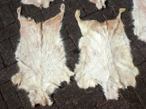 We offer goat skin. Goat skins size: 89 sqft average 9 sqft selection: 9010 iii monthly availability: 5 containers of 7000 skins per container dry salted goat skins: size 8 9 sqft average, machine pulled selection 70 % mix 30 % ii salted goat hides