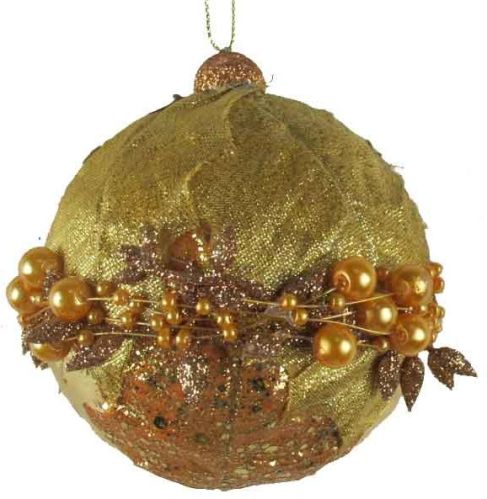 We offer Gold Christmas Ball. Polyfoam Christmas decorations Christmas ball covered by leaves, each leaf from a different polyester material and reflects a different gold feeling. All layers of gold performs very well on this product. The fancy beaded chain make the ball more interesting. Size: 8cm