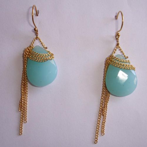 We are offering faceted glass earrings. Faceted glass bead earrings with chain side tassels. In other colours also gold micron plated.