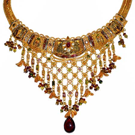 We bring forth finest quality gold necklace in the marketplace. Our yellow gold necklace reflects unique design with sparkling display of diamond studded on them. We deal in hallmarked gold jewelry necklace, thus customer can be assured of their quality and standard. Further, these gold necklaces are offered in customized designs as well. We are also one of the most dominant wholesale gold necklace suppliers in India.
