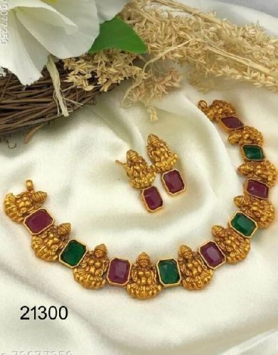 Gold plated lakshmi with ruby stone set