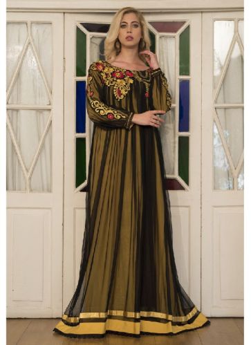 Gold Yellow Embroidered Full Sleeve Formal Maxi Dress?