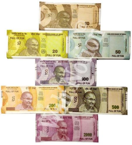 Contact SupplierWAH NOTION Dummy Indian Fake Currency Notes 90-100 Units for Each Denomination All-New 10, 20, 50, 100, 200, 500, 2000 Artificial Coupon Playing Artificial Currency for Children. Made of paper. This is for fun and enjoyment for children. Also can be used for school projects. Any misuse of this currency is prohibited under the RBI act. Rupees of different denominations are printed to look like real money. It focuses on the tactile reinforcement of counting, borrowing, and breaking up into smaller denominations. Play money also exposes young learners to understanding daily money transactions. Why Choose WAH NOTION:- Because We Strictly Inspection For Every Product Before Packing And Shipping To Ensure Its New Condition. We Are Always Liable For Fine Quality, Stylish Designs & Best Service. We Never Compromise With These Promises.Â