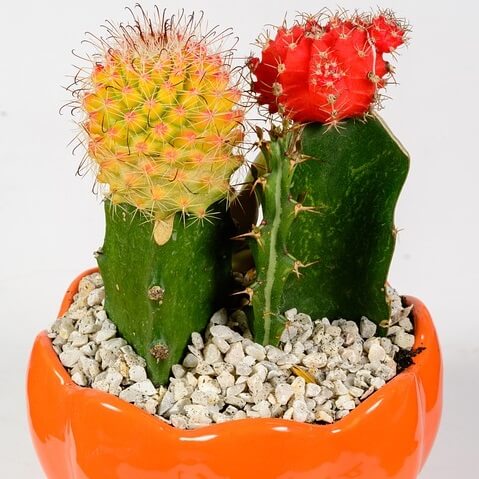 Moon cactus plants are known as Gymnocalycium mihanovichii or Hibotan cactus is a small group of cactus which is commonly grown as a grafted cactus. These plants are available in vast array of colors, sizes, textures, and shapes.