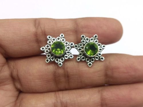 925 Sterling Silver Peridot Round Faceted Gemstone Stud Earrings