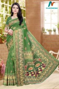 Green Chanderi With Zari and Digital Printed Saree