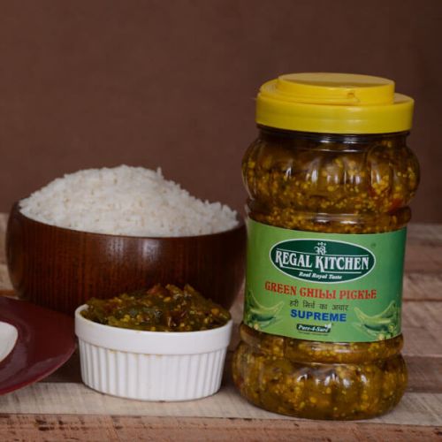 Contact SupplierThis spicy yet delicious pickle is a must-have with every meal and is popular among all the states of India. Regal Foods’ Green Chilli Pickle is prepared using fresh green chillies in combination with aromatic spices and oil. Its tantalising and yummy taste will leave you asking for more. So, add an extra zing to every meal with this pickle.