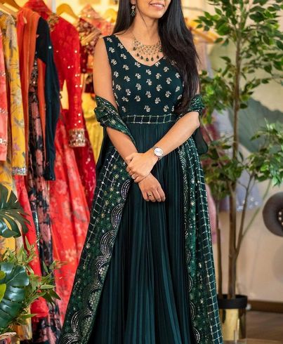 Georgette Embroidered Gown, Size : S To XL
