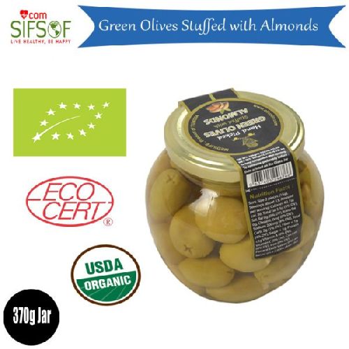 We offer you our Green Olives. Top Quality Olives. Olives Stuffed with Almonds, Green Table Olives.13.05 ounce / 370 ml Glass Jar.