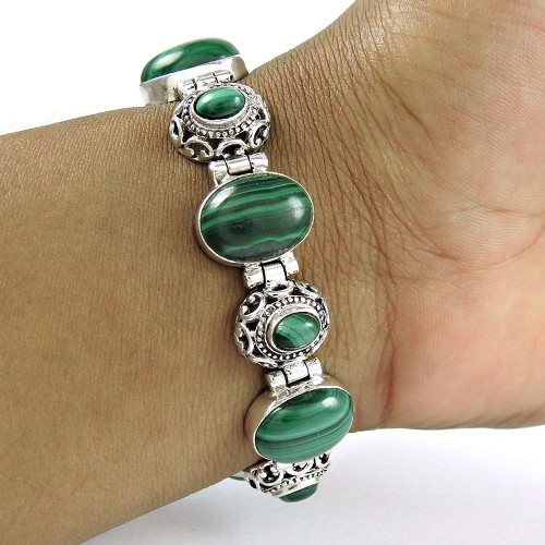 Pretty 925 Sterling Silver Malachite Gemstone Bracelet Jewelry