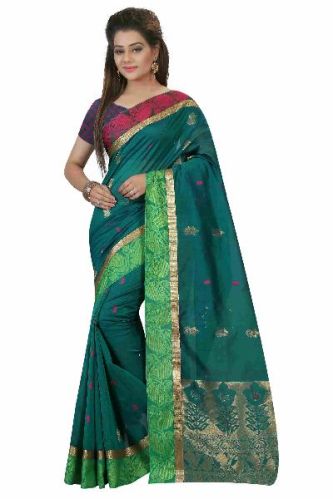 Contact SupplierGreen cotton Designer Saree with green Color printed Blouse. It Contained the work of golden Zari & designer pallu with printed lace border for dtutti fashion.