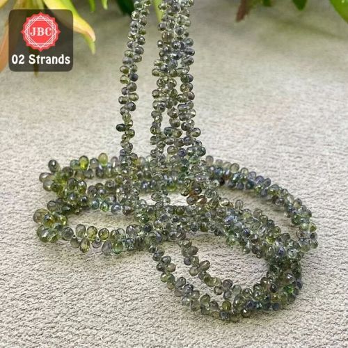 Green Sapphire 3-5mm Briolette Drops Shape 16 Inch Long Gemstone Beads - Total 2 Strands In The Lot - SKU:157974 - This Lot of AAA Grade Briolette Drops Shape Side Drilled Green Sapphire (Heated) Gemstone Beads is Originated From Sri Lanka and Cut & Polished in Jaipur (India) - Total 610 Pcs. on 16 Inch Long 2 Strands