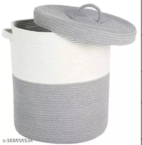 Grey & White Cotton Laundry Basket, Feature : Re-usability, Washable