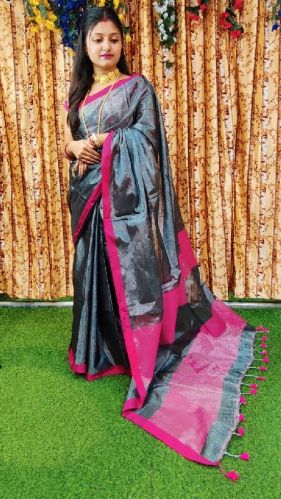 Unstitched Grey Tissue Silk Sarees, Width : 5.5 Meter