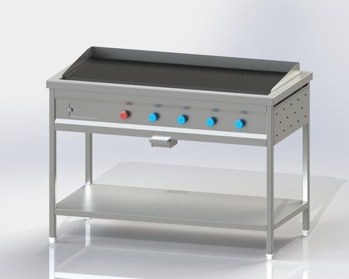 Free standing commercial Griddle plate offered for grilling. Heavy duty thick M.S grooved plate (removable). V-Type HP Burners provided to ensure uniform heating throughout the plate. Pilot Burner provided for V-type Burners. Constructed in heavy duty gauge of stainless steel 304. Inbuilt oil drain box provided for collection of oil. Range available with / without under shelf. Range can be fabricated in any custom sizes to suit your kitchen’s requirement