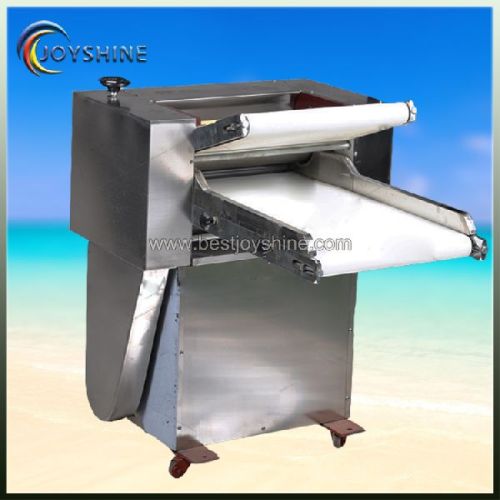Contact SupplierGrain Processing machinery industrial dough kneading machine The description of industrial dough kneading machine 1. Dough Kneading machine is pasta processing equipment. 2. the main features: smooth operation, noise, kneading force; kneading the dough elasticity, good tendons. 3. materials are part of the stainless steel contact, rust and durable, clean , Is pasta processing industry, catering industry necessary equipment.4. Just put the dough on the conveyor belt, boot automatically after delivery, kneading, pressure, folding. 5. Reducing the number of contacts between the staff and the machine, no manual design, eliminating the security risks, reducing the labor intensity of workers. The advantage of industrial dough kneading machine 1. Roller is 45 steel, Good toughness and Wearable. 2. Humanized design, Drive from bottom to top, can protect the operator's safety. 3. Adjust the handwheel, The thickness of the dough can be adjusted at will. 4. Stainless steel tray design, Clean and convenient. 5. Movable wheel, Convenient and practical, Smooth and reliable.  The parameter of industrial dough kneading machine Product model JS-RMJ350A JS-RMJ500 Processing capacity (kgtime) 4-8 5-10 Production efficiency (kgtime) 350 500 Compression roller adjustment range (mm) 5-25 5-20 Rubbing roll length (mm) 350 500 Rubbing roll speed (rads) 98 98 Power (kw) 2.2 4 Weight (kg) 230 255 Dimension (mm) 1120*615*1075 1250*810*1160