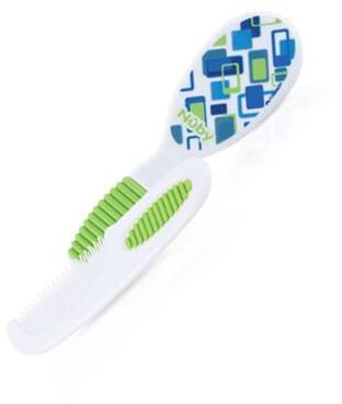 The colorful Comb and Brush Set with soft grip handles by Nûby™ was designed especially for your baby. The nylon bristles of the brush are soft and gentle to baby’s tender scalp. Both the brush and comb are sized just right for baby’s needs and comfortable enough for mom to hold! * Prints andor colors may vary