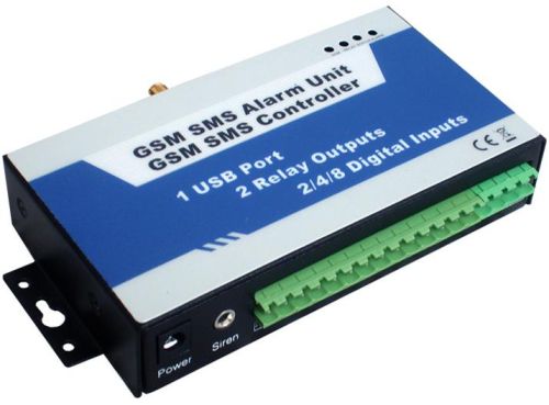 We offer GSM SMS Controller. The GSM SMS Controller-Alarm S150 is a universal GSM Remote Control switch and GSM Alarm Unit. it provides 8 digital inputs, 2 relay outputs(3A@240VAC, one is link-output relay, special for switch on or off appliance while the system alarm, another is independent output relay, it can be switched on or off by SMS commands.), and USB Serial Port. It allows you to monitor and control an alarm or remote stations or equipments or machines by SMS. Please contact us for more information, Skype: AfricaGsmAlarm