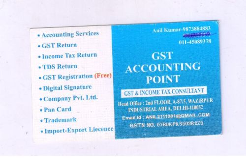 OUR SERVICES 1.Gst monthly Return File. 2.Gst Accounting and Book Writing. 3.Gst Compliance. 4.Import Export Code and LUT 5.All Type of Taxation Service. We are providing a wide range of Consultancy on Taxation and Accounting Matters to our clients as per their requirement.