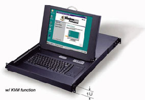 Rackmount LCD Monitor The Rackmount TFT LCD monitor keyboard drawer model features: Unique mechanical design to maximize rack mountable space Unique flip up monitor design allows viewing through closed glass door of cabinet Adjustable mounting brackets from 15-717 in. to 31-332 in. (front to rear 19in. mounts) Slide Tray MonitorsLightweight aluminum construction Slim size keyboard with glide point touch pad mouse 1U (1.75in.) height