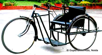We offer Tricycle for handicapped. Manual driven with hands. Standard cycle tyres, dimensions = 3 ft wide.