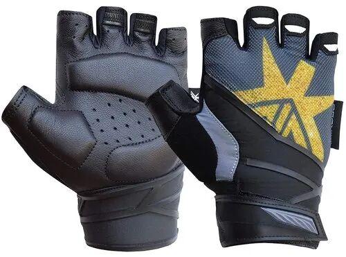 Leather Gym Gloves, Color : Black