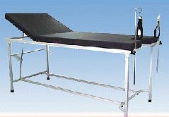 frame work made of rectangular square m.s tubeback rest section adjustable on ratchet leverlegs fitted with pvc stumps · 5 cm foam cushioned to covered with rexine with perineal cutadjustable lihotomy poles with strapsepoxy powder coated