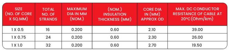 SINGLE CORE PVC TI 1 TYPE INSULATED NON SHEATHED CABLE FOR INTERNAL WIRINGApplications :