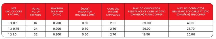 Conductor : Class 5 Flexible plain/Tin coated multi Strands Copper IEC 60228