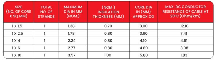 Conductor : Class 1 Solid bare Copper IEC 60228