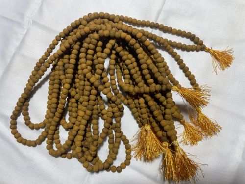 Yellow Solid Round Haldi Polished Mala, For Puja, Size : 7-8mm