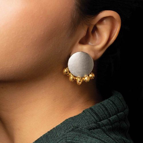 INSPIRATION: • This collection is our best seller for a reason: it’s a classic amalgamation of traditional and modern designs. DESIGN: • All super versatile and light weight. This beautiful pair of earrings are handcrafted to perfection using fine quality brass, ghungroos, light silver and gold plating on it. STYLE: • Silver and 18kt Gold Plated Brass • Handcrafted Statement Jewellery