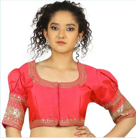 Half Sleeves Pink Raw Silk Blouse, Size : 32, 34, 36