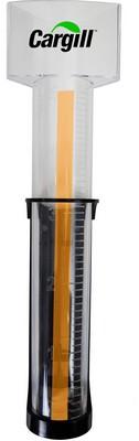 Weather resistant clear plastic allows you to quickly see and measure rainfall events up to 5". The orange marking behind the numbers magnifies the numbers for easy reading. The stake can be mounted to a post with your own screws or the stake can be inserted into the ground. 3" W x 11" L x 1.5" D