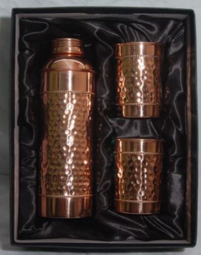 Hammered Copper Bottle & Glass Set, Color : Brown Standard