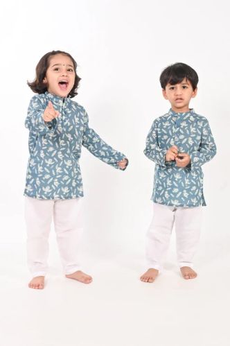 Introducing Chidiya Udd, the perfect unisex kurta for boys and girls! Made with 100% cotton and featuring handblock printing, this versatile short kurta can be paired with jeans or pants for a stylish and comfortable look. Elevate your child's wardrobe with this must-have piece.