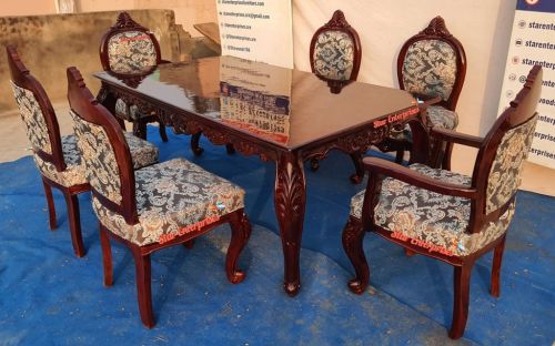 Elegant 6 Seater Dining Set with timeless dark brown polish. Sleek and streamlined design suitable for modern or traditional spaces. Crafted from high-quality materials for durability and longevity. Perfect for accommodating gatherings with style and sophistication