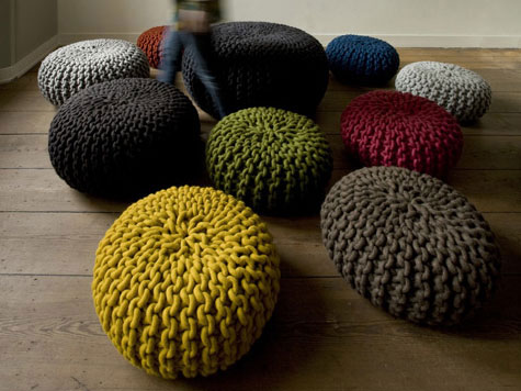 We are offering hand knitted wool pouf. 1.hand knitted pouf from india 2.size aa d50xh35 cm 3.colors: all pantone colors possibale cotton knitted pouf cushions available with filled concepts. nice range of cotton, polyester mixed knitted pouf cushions available. filling with thermocol beans. Hand knitted and finshed beatifully. Vast range available for selection. Prices are best competitive. Available co ordinated poufs, throws, baskets, pot holders