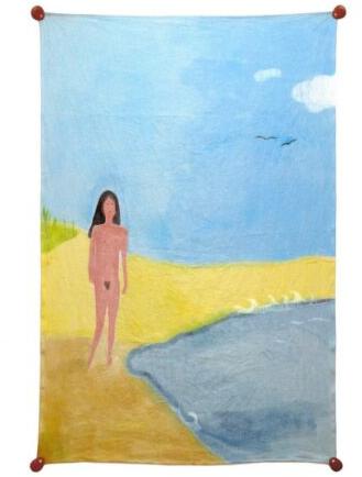 AN EDITION OF 12 BEACH BLANKETS HAND PAINTED BY TYLER HAYS. BLANKETS COMES WITH LEATHER WEIGHTS AND COPPER DETAILS. EVER TRY TO LAY OUT YOUR BEACH BLANKET TO HAVE IT JUST BLOW AWAY OR USE YOUR FLIP FLOPS TO HOLD THE SIDES DOWN? WELL YOU WON'T HAVE TO WORRY ANYMORE. OUR LEATHER BLANKET WEIGHTS KEEP EVERYTHING FLAT AND HASSLE FREE. MATERIAL: 100% CRUSHED LINEN APPROX: 82 L x 53 W